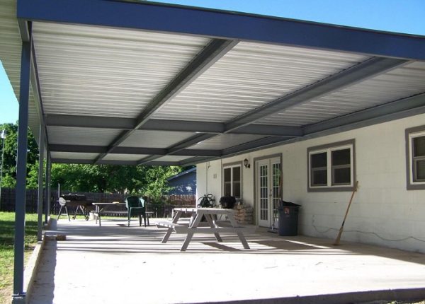 • Mái tôn che sân bằng tấm tôn lạnh: tôn lạnh có khả năng chống nhiệt, phản xạ với tia nắng mặt trời nên sẽ giúp cho khoảng sân bên dưới luôn mát mẻ.